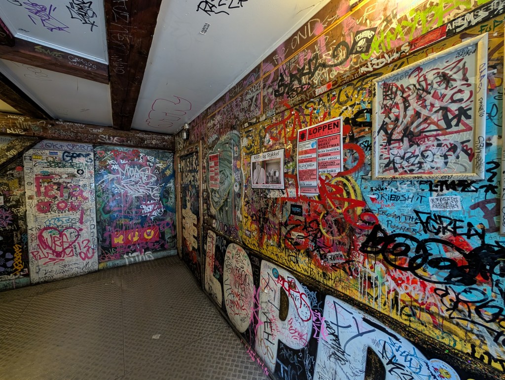 A trip to Copenhagen wouldn’t be complete without paying a visit to Christiania. Once upon a time, this thriving autonomous community was the go-to place for parties (and soft drugs), but recent police clampdowns metamorphosed the district into a family-with-three-kids affair. ‘Where are the masked men peddling weed?’ I ask, and there is no reply. A solitary cop standing at the corner is helping tourists find the way, the no-photo signs all got their addendums that in fact everyone’s very welcome to take pictures. Something in the air though, perhaps an aura of the place, it still remains, for now unbothered by an impending process of gentrification. We climb up a graffitied staircase and into an art gallery housing works by a dying breed of Christianians, antifascists, hippies, addicts, people with stories as colourful and scintillating as the works they present. I could sit there for a long time, but we’re on a tight schedule.