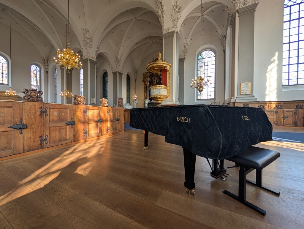 I have a return flight late in the evening, so I still have one more day to explore. We didn’t manage to see the elephants in an open enclosure in Frederiksberg Have, but we do see these grand animals adorning the inside of the Church of Our Savior. They symbolize the chivalrous Order of the Elephant established back in the seventeenth century, and there’s supposed to be forty of them strewn across the whole edifice, but instead of a compulsive count, I focus on other elements of the interior. What strikes me most about the church is its close connection to more opulent temples of the Catholic and Orthodox worlds, contrary to the popular view linking Protestantism with austerity. The archangel statues glare at us, petrified mid-motion; the vertiginous, ornamental vaults spread high above our heads, and they remind me of my hometown’s cathedral; the Fazioli grand piano… let’s just say I am going to hear about it come Easter time; the sturdy pews coax a weary traveler into sitting down and relishing the silence.