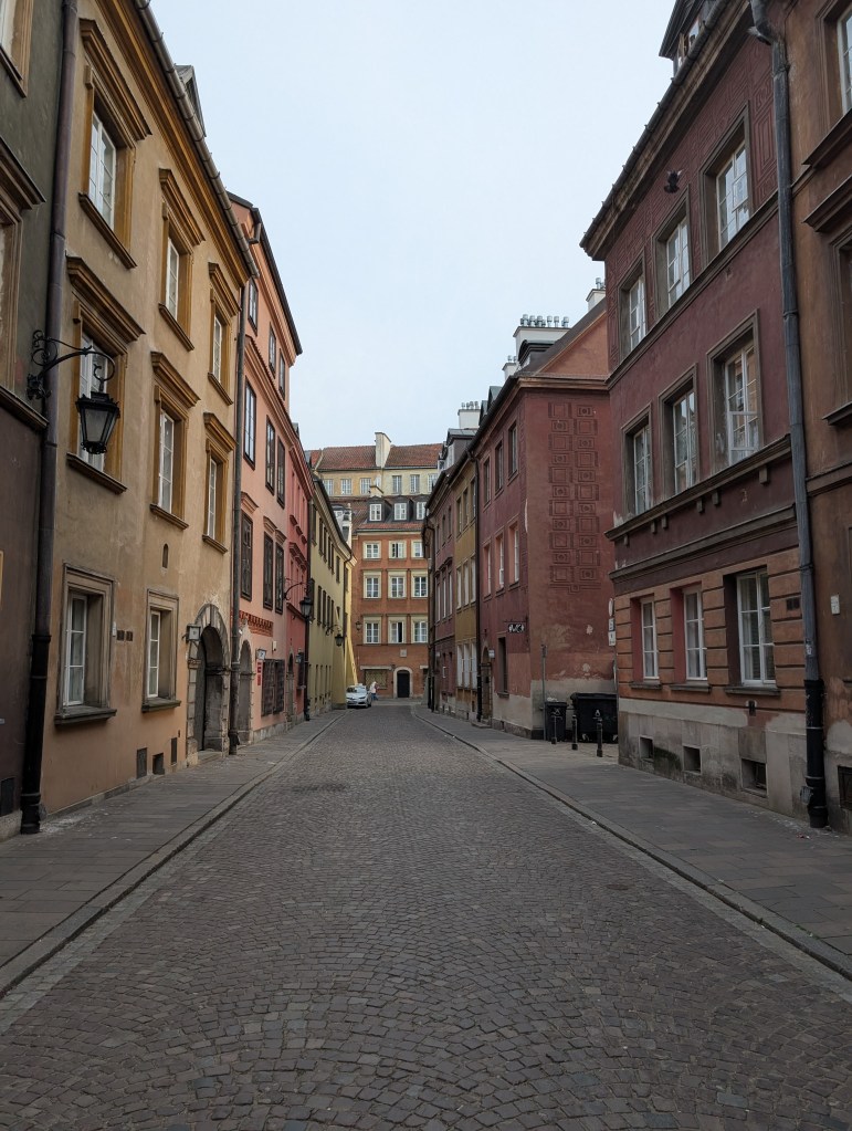 Cutting the memory lane trip short, I once more find myself under the bridge from the day before, this time meeting with A. Our meetings are wholesome, she says afterwards, and she’s right. We nibble on some Japanese street food delicacies (Sakamoto-Ya, highly recommended), and then amble towards and along the Vistula until we reach the Old City. I know most of it is just a meticulous restoration effort after Warsaw was destroyed in 1944, but thank heavens for such endeavours. We walk slowly, enjoying the relative calm, the narrow streets, the quaint townhouses, our footsteps echoing on the cobblestones. We talk and talk and talk and quite unlike me, I want to talk more; I am not exhausted.