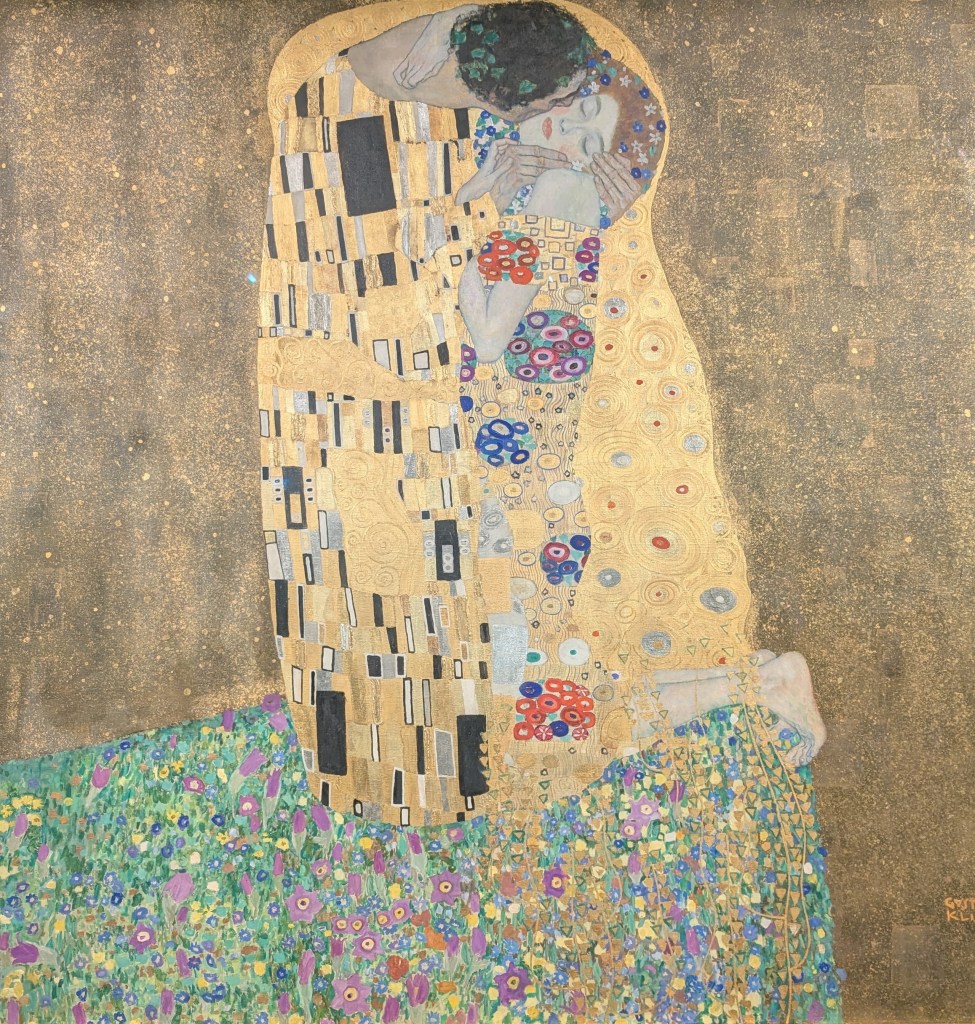 Klimt’s Kiss is a bit of a letdown, but at least it’s bigger than I thought. Unlike its many prints that follow an elongated, rectangular shape, it actually has a square base of about 1.8 metres by 1.8 metres. The painting is constantly surrounded by a throng of museum visitors; half of them are rich Chinese people, enjoying Europe before the next geopolitical storm barricades the gates to the continent for them. It’s hard to push my way through to the very front, it’s a meticulous operation with high risk of failure, as everyone seems to want a selfie with the painting.