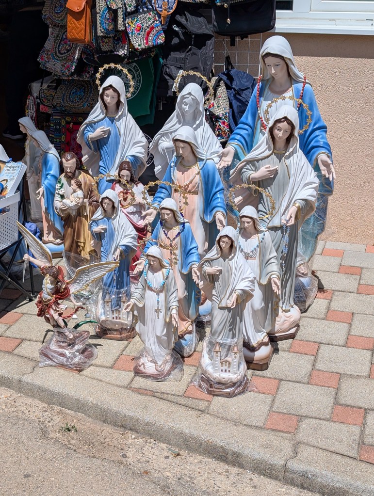 I can feel an undeniable sense of purpose and determination as soon as I get off the bus. The feeling is undiminished by the fact that half of the village has one goal only, to cater for tourists coming in droves: restaurants, souvenir shops selling rosaries and many-sized Holy Mary figurines, hotels, the whole shebang. Not exactly mystical, but let me first walk away a little bit further in search of a different experience.