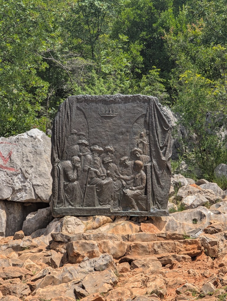 Back in Medjugorje, and still with a lot of time to spare, I visit the parish grounds. On my way, I meet two Spanish women hiding in the shade of a big bus with Polish license plates, looking for directions to their hotel. My first ever conversation in Spanish, bits and pieces of what I learned on Duolingo. Por aqui…la iglesia…a la izquierda. It’s as if I were speaking in tongues. Now informed, the two pilgrims continue along the way I have just come from.