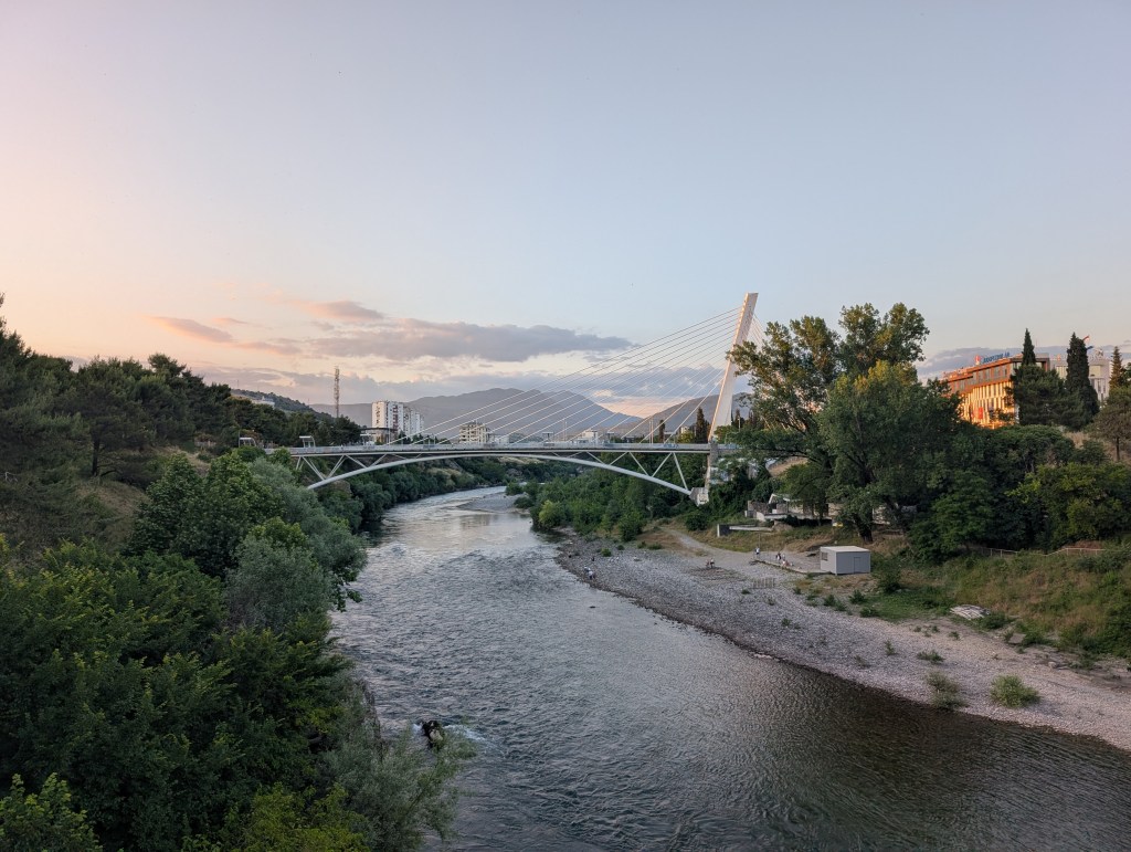 A is from Ukraine and she’s telling me the story of how she left the motherland, many stops on the road, across the ocean and within Europe, and then, the most unlikely candidate to put your bags down, Montenegro and its ugly as hell capital. She is a dance teacher, lives with her ma and kid, and tonight, she wanted to do something out of her routine. So we talk, and amble along the Millenium Bridge, which has been the only impressive piece of Podgorica architecture so far. Let me show you something a bit nicer, and we leave the bridge and walk along the river.
