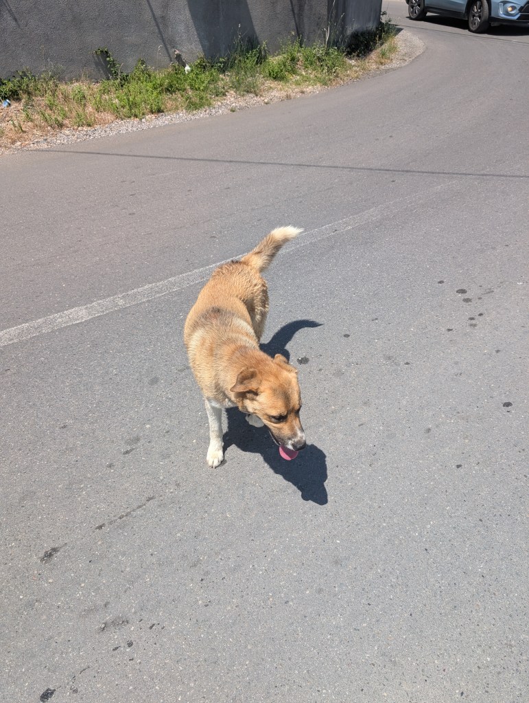 I spend about an hour by the waterfall, walking up- and downstream. Then I need to catch a bus back to the city center; it doesn’t arrive. It might be my overreliance on Google Maps (again!), I might have incorrectly chosen the street parallel to where the return bus route actually is. Waiting at the bend of the road, I soon make a new friend, a stray dog who keeps barking at all the privileged dogs guarding the village houses.