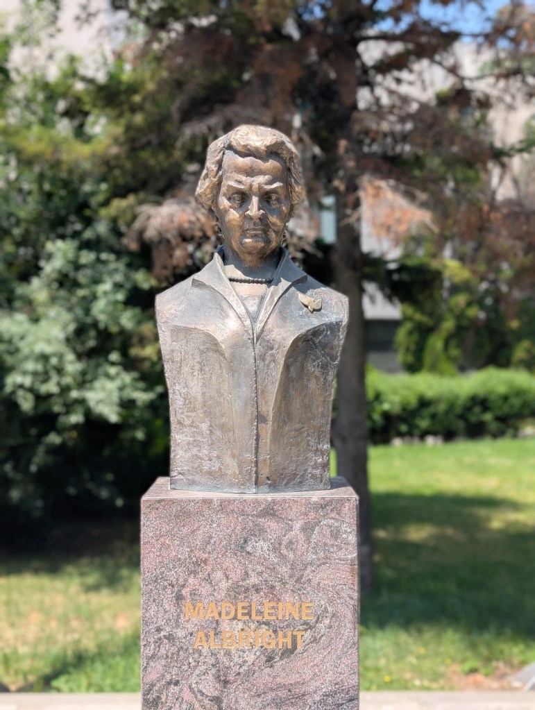 Many landmarks were erected to commemorate those events. Bill Clinton is waving at me from a pedestal in the city center, the Kosovo flag spread out on the billboard behind him. And the name of a boutique shop nearby? Yeah, you guessed it. Hillary. And then there is also Clinton’s avenue, as well as the avenue of George Bush. Madeleine Albright’s bust looks at me sternly, a stunning resemblance, the sculpture is almost like her real-life counterpart.