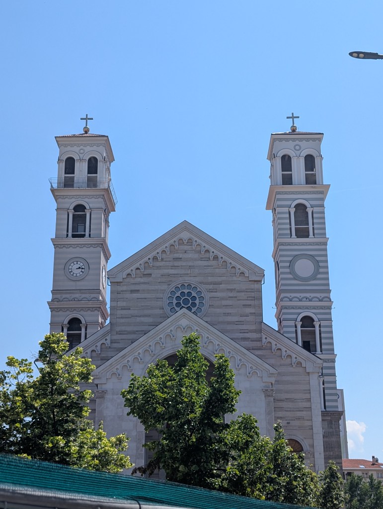 Pristina is also home to a large Catholic cathedral, despite Catholics making up less than five percent of the city’s population. But that’s understandable, here, in North Macedonia, and of course in Albania proper, Mother Theresa of Kolkata is celebrated as a saint, despite not being a member of the region’s predominant religion. I ride up to the top of the bell tower and see a city developing fast. I guess it’s a part of Kosovo’s drive to be unlike some of its neighbors. They want a clear separation, they desire more resemblance to Western Europe, their goal is to be a part of it. It’s like that sign in the city centre, NEWBORN. It has nothing to do with (the lack of) women’s reproductive rights. Instead, it’s a reminder of a country risen from the ashes to make its own story, follow its own path.