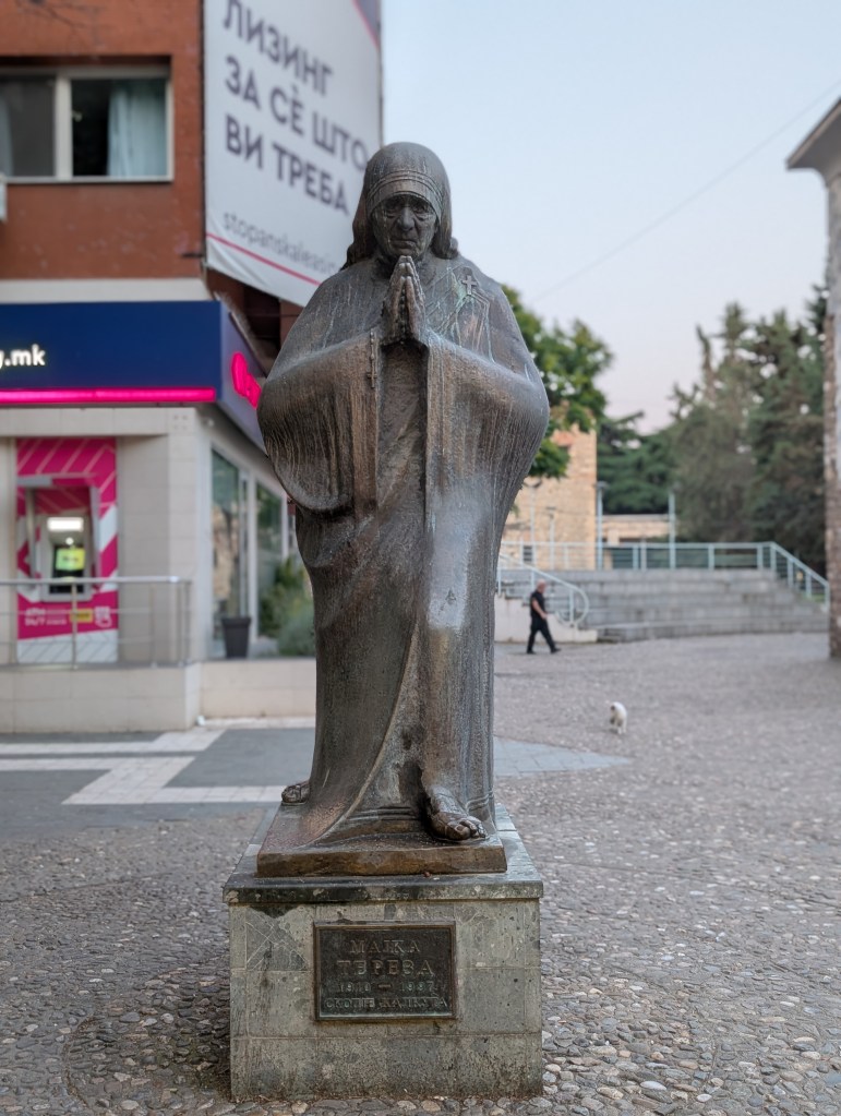 Further away from the river I meet Mother Theresa, a common sight wherever there is a significant Albanian population. The saintess used to live in Skopje for eighteen years, and is now forever memorialized in stone, humbly inviting visitors to the museum located next to her statue.