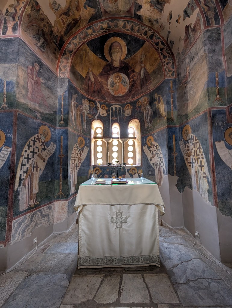 The last part of our trip is the Church of St Panteleimon, a fresco-filled 12th-century chapel overlooking the Macedonian capital. This time, I enter alone. Only later will I understand D’s point that soon enough, all churches will look exactly the same.